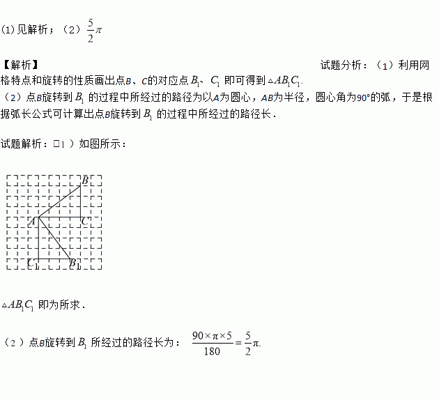 的小正方形组成的网格中,△ABC的三个顶点均在格点上,将△ABC绕点