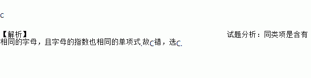 C 【解析】试题分析:同类项是含有相同的字母,且字母的指数也相同的单项式.故C错,选C.