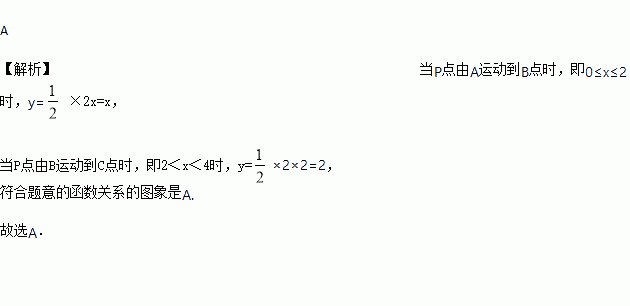 如图,正方形ABCD的边长为2cm,动点P从点A出发,在正方形的边上沿A→B→C的方向运动到点C停止,设点P的运动路程为