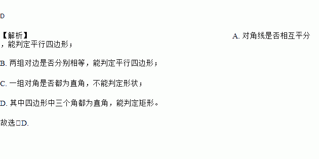 C. 测量一组对角是否都为直角 D. 测量其中三角形是否都为直角