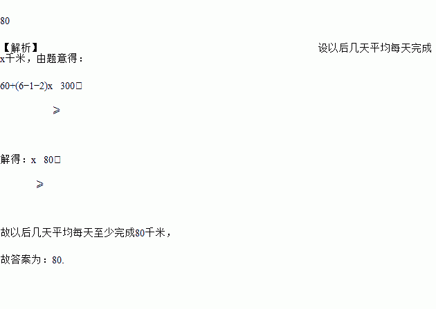 一个工程队规定在6天内完成300千米的修路工程,第一天完成了60千米,现在接到通知要比原计划至少提前2天完成任务,以后几天平均每天至少完成__________千米.