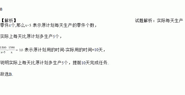 某工厂计划生产1500个零件,但是在实际生产时,……,求实际每天生产零件的个数,在这个题目中,若设实际每天生产零件x个,可得方程