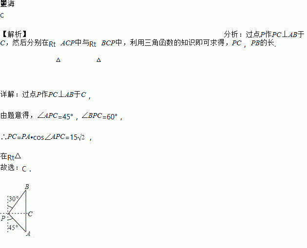 如图,一艘海轮位于灯塔P的南偏东45°方向,距离灯塔30海里的A处,它沿正北方向航行一段时间后,到达位于灯塔P的北偏东30°方向上的B处,这时,B处于灯塔P的距离为( )