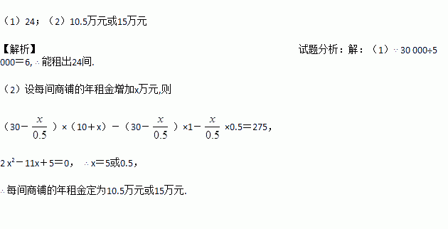 某公司投资新建了一商场,共有商铺30间.据预测,当每间的年租金定为10万元时,可全部租出.每间的年租金每增加5 000元,少租出商铺1间.该公司要为租出的商铺每间每年交各种费用1万元,未租出的商铺每间每年交各种费用5 000元.