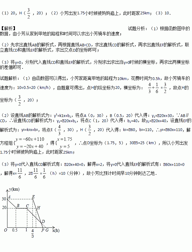 (1)小芳骑车的速度为 km/h,H点坐标 .