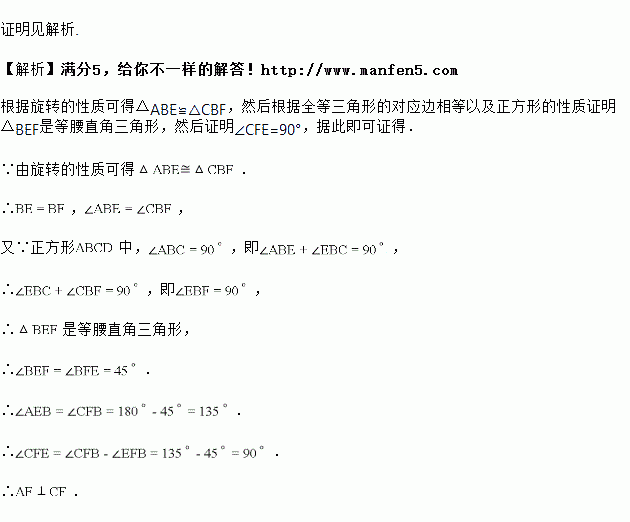 如图,点是正方形内一点,将绕点顺时针旋转到的位置,点,,恰好在同一直线上.求证:.
