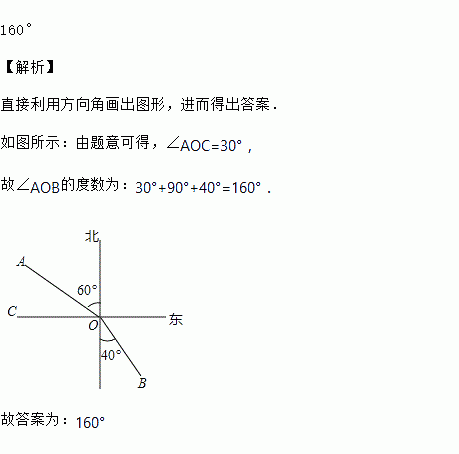 已知点A在O的北偏西方向,点B在点O的南偏东方向,则的度数为______.