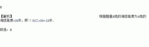 已知A地的海拔高度为—53米,而B地比A地高30米,则B地的海拔高度为( )