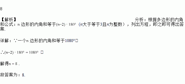 如果一个边形的内角和等于1080°,那么=______.