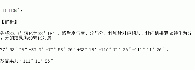 计算:77°53′26″+33.3°=____.