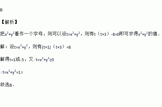 已知(x2+y2+1)(x2+y2+3)=8,则x2+y2的值为( )