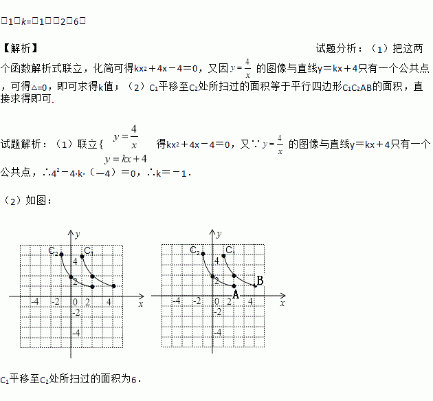 (1≤x≤4)的图象记为曲线Cl,将Cl向左平移2个单位长度,得曲线C2,请在图中画出C2,并直接写出C1平移至C2处所扫过的面积.