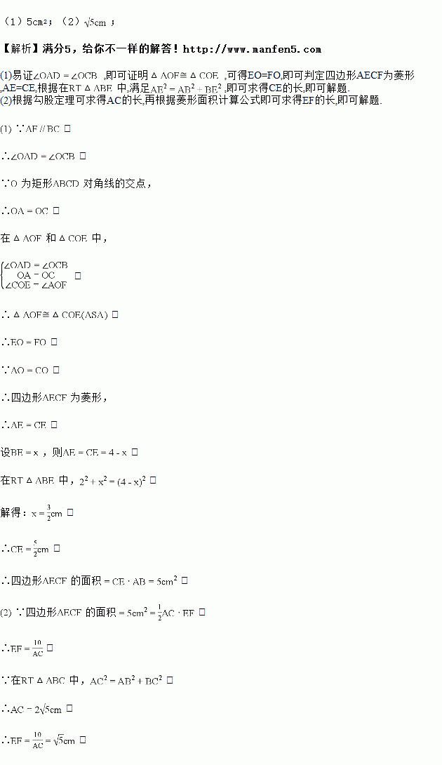 如图,为矩形对角线的交点,过作,分别交、于、,若AB=2cm,BC =4cm.