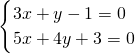 解答:∵|3x+y-1|+|5x+4y+3|=0,
