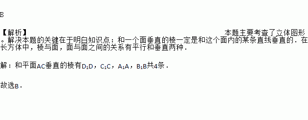 在图所示的长方体中,和平面AC垂直的棱有( )