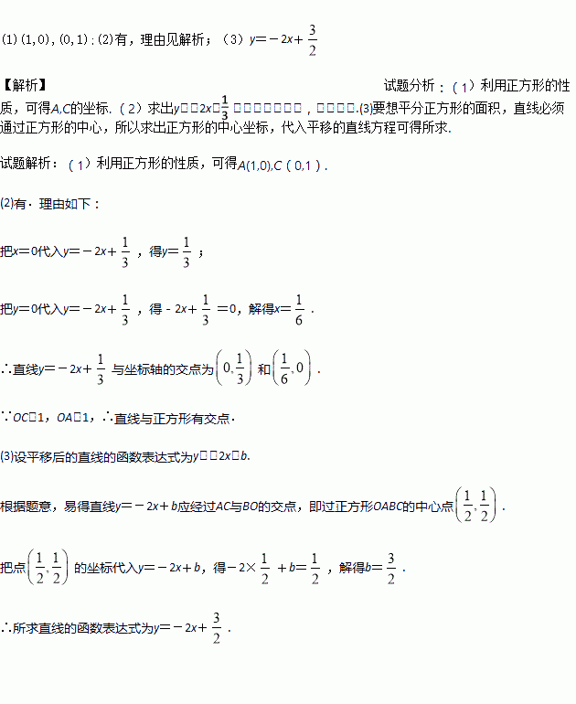 进行平移,恰好能把正方形OABC分成面积相等的两部分,请求出平移后的直线的函数表达式.