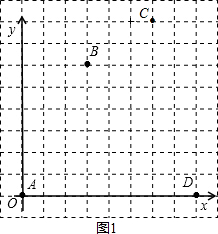 分析 (1)选取适当的点作为坐标原点,经过原点的两条互相垂直的直线分别作为x轴,y轴,建立坐标系,分别描出点A、点B、点C、点D.如确定(3,6)表示的位置,先在x轴上找出表示3的点,再在y轴上找出表示6的点,过这两个点分别做x轴和y轴的垂线,垂线的交点即所要表示的位置.
