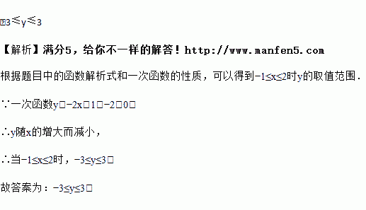 己知一次函数y=﹣2x+1,若﹣1≤x≤2,则y的取值范围为_____.