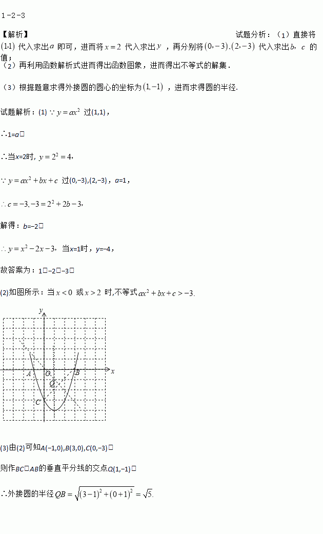 (3)该图象与x轴两交点从左到右依次分别为A、B,与y轴交点为C,求过这三个点的外接圆的半径.