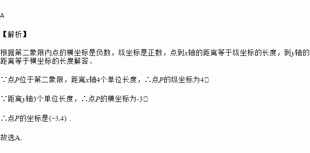 已知点P位于第二象限,且距离x轴4个单位长度,距离y轴3个单位长度,则点P的坐标是( )