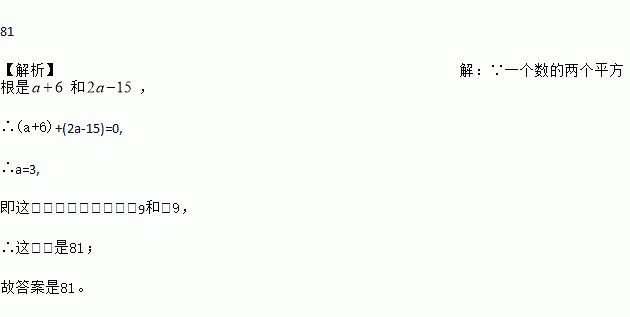 如果一个数的平方根是a+6和2a﹣15,则这个数为________.