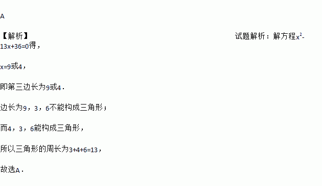 三角形两边长分别为3和6,第三边的长是方程x2﹣13x+36=0的两根,则该三角形的周长为( )