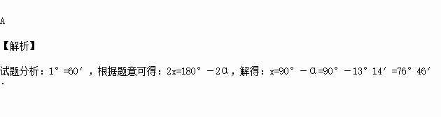 A.76°46' B.76°86' C.86°56' D.166°46'