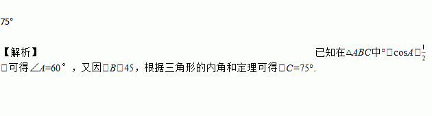 在△ABC中,∠B=45°,cosA=,则∠C的度数是_____.