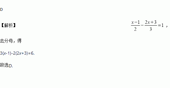 A. 3(x-1)-2(2x+3)=1 B. 3 ( x-1) + 2(2x+3)=1