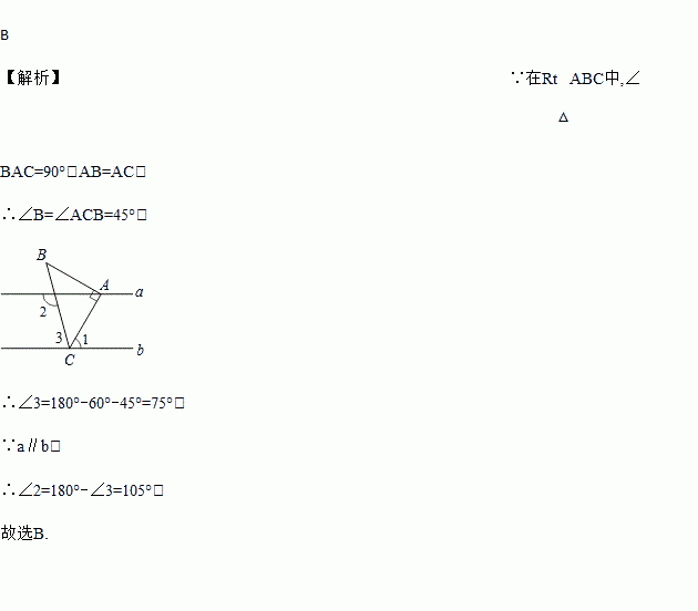 查看答案如图,在Rt△ABC中,∠BAC=90°,AB=AC,点A,点C分别在直线a,b上,且a∥b.若∠1=60°,则∠2的度数为( )
