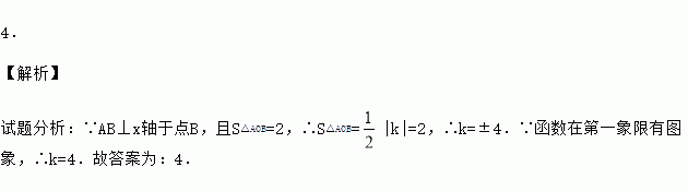(x>0)的图象上一点A作AB⊥x轴于点B,连接AO,若S△AOB=2,则k的值为 .