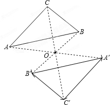 连接AO并延长至A′,使OA′=0A,连接BO并延长至B′,使OB′=0B,连接CO并延长至C′,使OC′=0C,然后顺次连接即可得解.