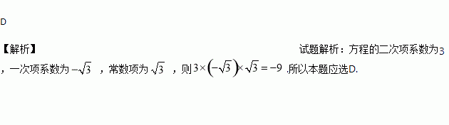 方程3x2-x+=0的二次项系数与一次项系数及常数项之积为( )