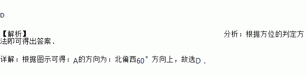A. 南偏东30° B. 南偏东60° C. 北偏西30° D. 北偏西60°