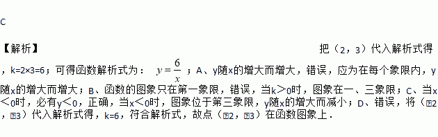 C. 当x<0时,必y<0 D. 点(-2, -3)不在此函数的图象上