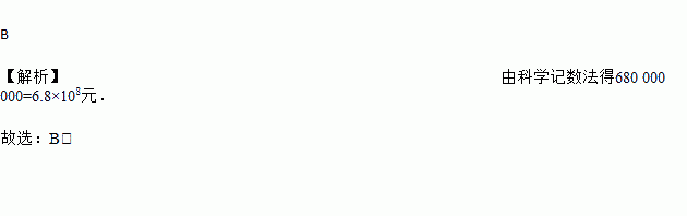 A. 6.8×109元 B. 6.8×108元 C. 6.8×107元 D. 6.8×106元
