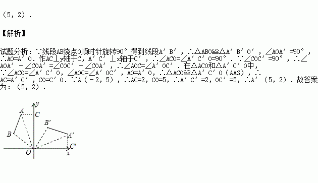 如图,将线段AB绕点O顺时针旋转90°得到线段A′B′,那么A(﹣2,5)的对应点A′的坐标是 .