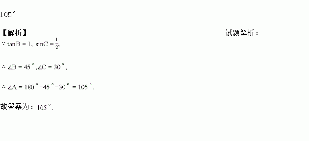 在△ABC中,tan B=1,sin C=,则∠A=________.