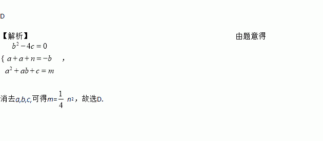 已知方程x2+bx+c=0有两个相等的实数根,且当x=a与x=a+n时,x2+bx+c=m,则m、n的关系为( )