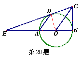 ∴∠CDO=∠CBO=90°.又∵点D在⊙O上,∴CD是⊙O的切线.……4分