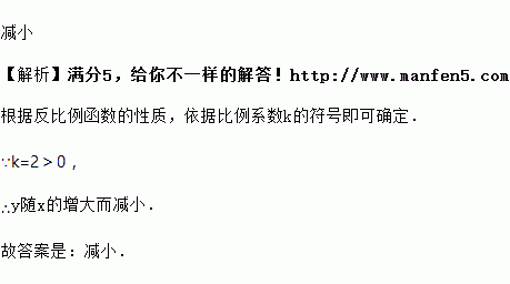 在反比例函数y=图象的每一支上,y随x的增大而________(用“增大”或“减小”填空).