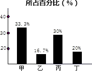 (2)通过圆心角占360°的比例,得到甲、乙、丙、丁占整个扇形的比例,用总人数乘以比例则得到甲、乙、丙、丁所代表的人数.