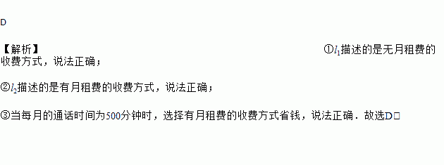 ③当每月的通话时间为500分钟时,选择有月租费的收费方式省钱.