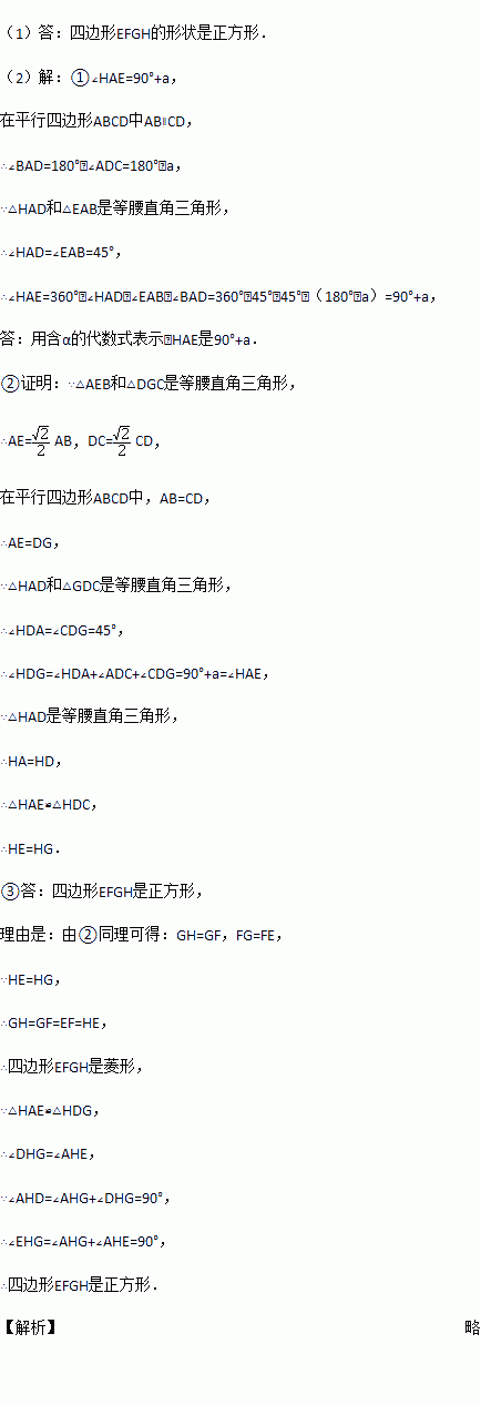 (2011•舟山)以四边形ABCD的边AB、BC、CD、DA为斜边分别向外侧作等腰直角三角形,直角顶点分别为E、F、G、H,顺次连接这四个点,得四边形EFGH.