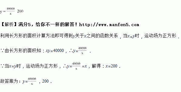 学校内要设计一个面积是㎡长方形的运动场,则运动场的长与宽之间的函数关系式为________,当________时运动场是正方形.