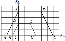(1)以O为位似中心,在图中作四边形A′B′C′D′,使四边形A′B′C′D′和四边形ABCD位似,且位似比为1:2;