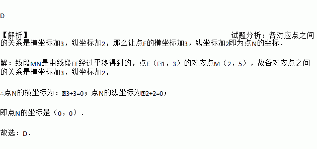 线段MN是由线段EF经过平移得到的,若点E(﹣1,3)的对应点M(2,5),则点F(﹣3,﹣2)的对应点N的坐标是( )
