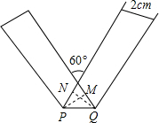 在Rt△PQN中,PQ=$\frac{QN}{sin60°}$=$\frac{2}{\frac{\sqrt{3}}{2}}$=$\frac{4}{3}\sqrt{3}$cm.