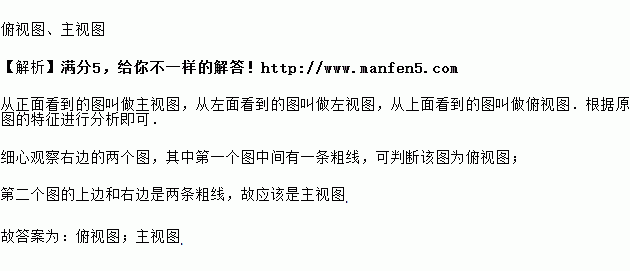 如图,粗线表示嵌在玻璃正方体内的一根铁丝,右边是该正方体的主视图、左视图和俯视图中的两个,请在两个视图中写上相应的名称________________.