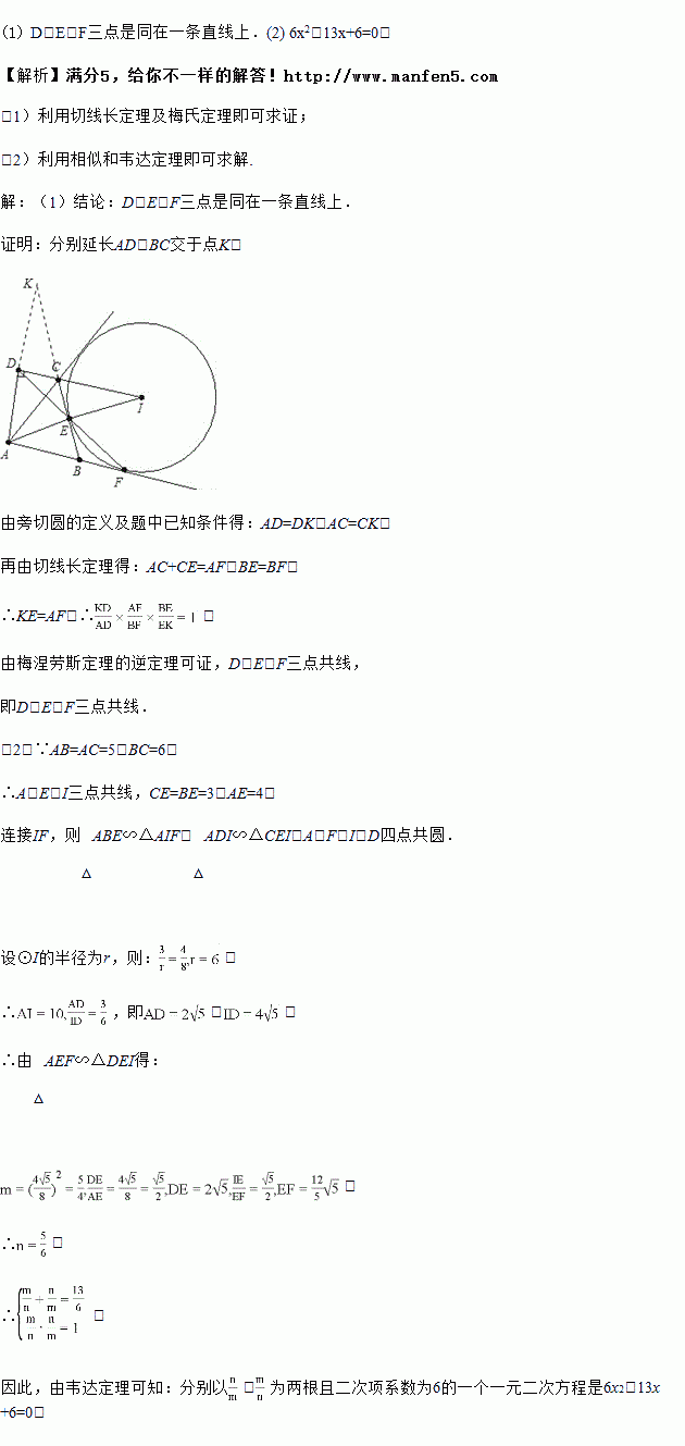 (2)设AB=AC=5,BC=6,如果△DIE和△AEF的面积之比等于m,